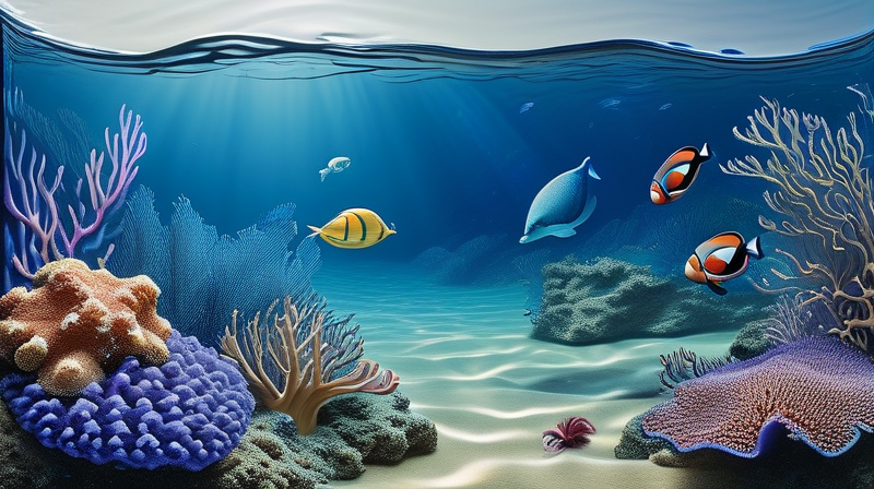在浩瀚无垠的蔚蓝大海中,生活着形态各异、习性独特的海洋生物,它们有的悠闲自得地漂浮在水面上,有的则在海底深处寻找食物和栖息地,这些海洋生物不仅构成了一个多样化的生态系统,也为我们揭示了生命的奥秘和多样性。